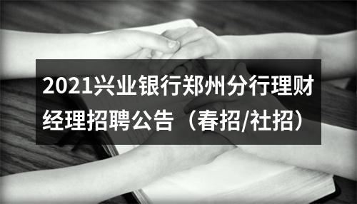 原标题:兴业银行郑州分行2021年理财经理招聘公告