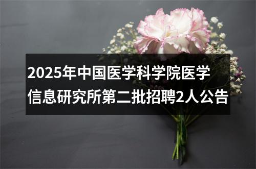 原标题:中国医学科学院医学信息研究所2025年第二批公开招聘工作人员公告